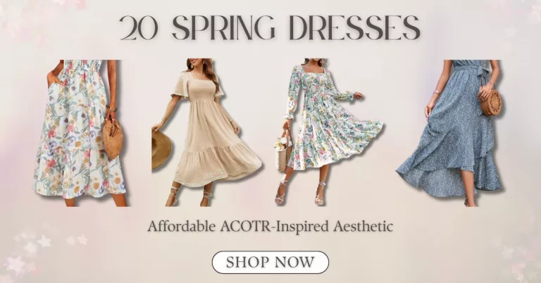 Discover 20 affordable spring dresses inspired by my ACOTAR reread, from pastel florals to Night Court elegance. Cozy, bookish, and perfect for the season.