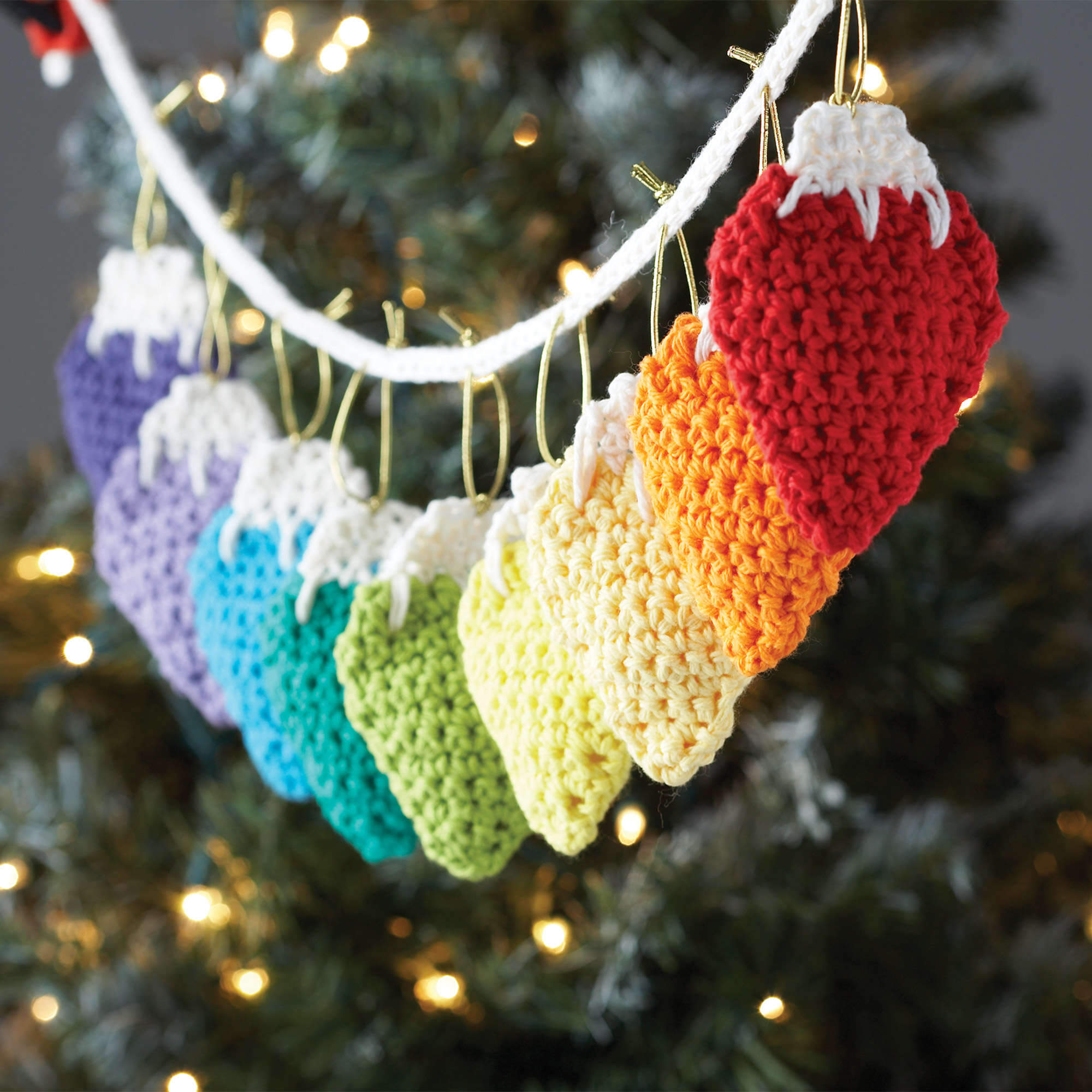 Crochet your own string of holiday lights with this bright and bold pattern. Each bulb is shaped with simple stitches and stuffed for dimension, then strung together for a festive effect. It’s a fun way to add handmade sparkle to your home without the tangle of real wires.