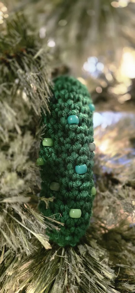 - Handmade charm – A crocheted pickle adds warmth and personality to your tree.
