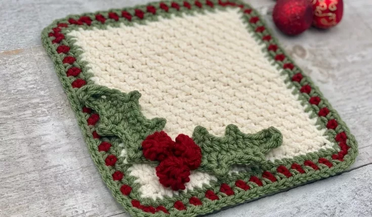 Bring rustic charm to your crochet projects with the Holly Square. Moss stitch forms the base, accented by separate holly leaves and berries for a dimensional, seasonal look. Great for pillows, throws, or festive table toppers.