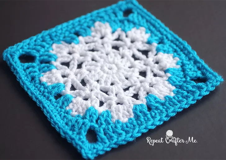 Crochet Snowflake Granny Square (Repeat Crafter Me)